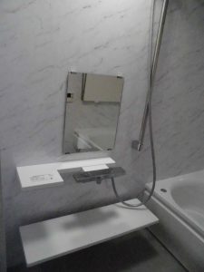 オーナー様からのご相談内容で一番のポイントは“ユニットバスの掃除が大変である”ということでした。そこで、今回はオーナー様との詳細な打ち合わせの結果、TOTO様の「床ワイパー洗浄(きれい除菌水)」機能付きのユニットバスに交換することとなりました。また、最近はアクセントパネル仕様のユニットバスを採用されるお客様が多いですが、今回はオーナー様からのご要望をもとに、シンプルに4面同じ大理石調のパネルを使用することで高級感のあるすっきりとした空間に仕上げさせていただきました。